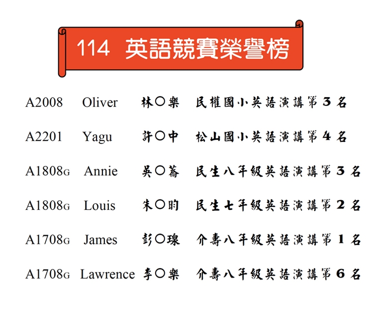 107年至114年榮譽榜